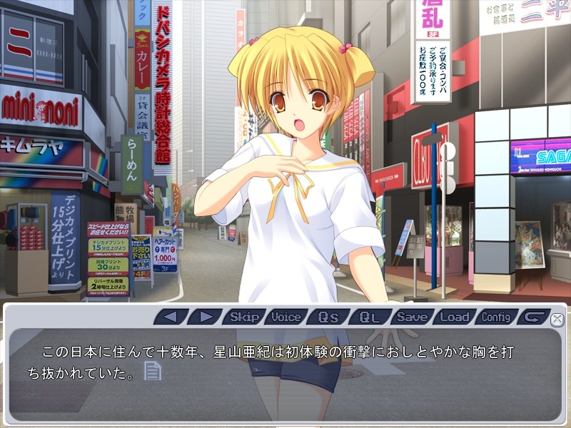 In the 21st century Tokyo suffers from terrorist acts set by modified humans. Disappointed by police ineffectiveness, a provincial town girl moves to Tokyo. This is a story about a girl and two modified humans who stand up to protect Tokyo from the the evil army. vndbreview]