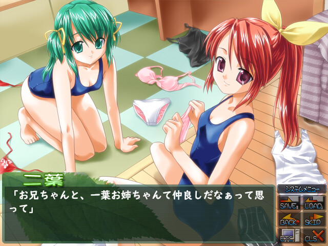 Main character's father remarries to a woman with twin daughters. After half a year father dies leaving protagonist in change of mother-in-law and step sisters. Girls start to pay excessive attention to their new guardian. vndbreview]