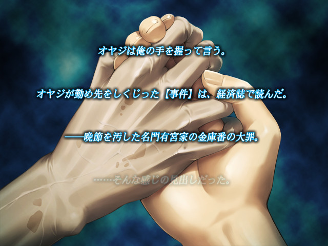 An evil politician Arimori Kamoshige have been a local governor for 40 years,. Abusing his power, he has gained wealth and women. The protagonist’s father has managed Arimori’s black money as a right hand person, but later, he was expelled being charged false crime. He got discouraged and called his runaway son, Tatsuya. He asked Tatsuya his revenge on Kamoshige. Soon his father died, and Kamoshige hired Tatsuya as the third secretary. However, Kamo also died 3 months later. Just before his death, he changed the pass code of a safebox which hidden black money was in. Then, the power balance of Arimori Family changed. The person who obtains the hidden money will get become the next ruler. While Arimori Family is conflict for the hidden money, Tatsuya begins his revenge.