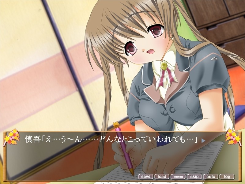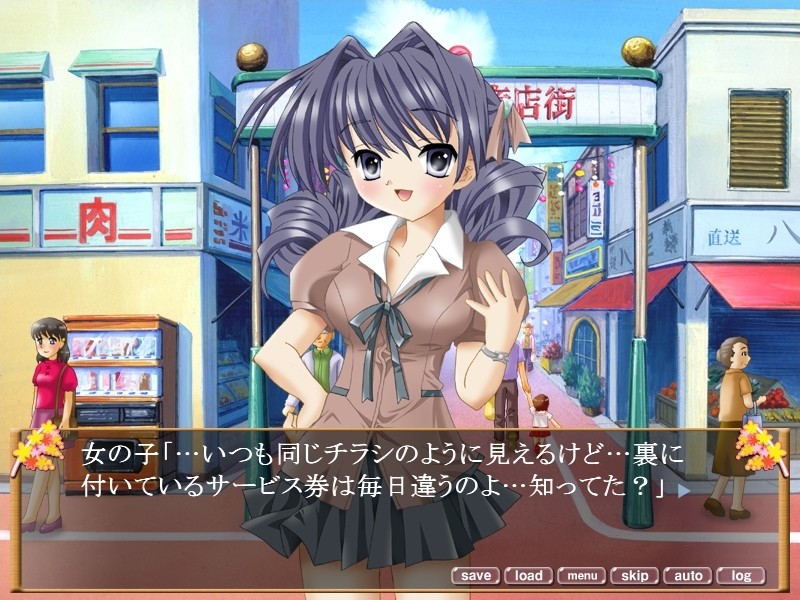 One day, Shingo, at the request of his sister, takes on a part-time job as a private tutor and becomes acquainted with the girls as their teacher. This leads to a significant change in his daily life. Through various encounters and events, he discovers the depth of their personalities that he couldn't perceive just by watching from a distance. Shingo realizes that romance is more complex than he initially thought. The girls wear aprons from their respective shops over their school uniforms. Additionally, the "Shopping District Gossip Circular" system allows players to obtain various information and use it as hints to capture the hearts of the girls.