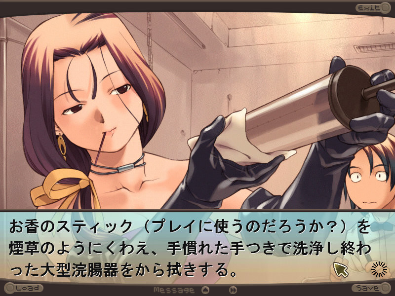 You're the manager of a small S&M club, with a dependency on paid members. But the chief is displeased with you, and your staff. So you have until Christmas to turn the club around, which is less than one month in the game world. In this time, you must promote the club, run the business and train five new female employees. You also have to keep up relations with the girls in order to lower their stress levels. If their stress level gets too high, customers don't like them. You need to get repeat customers in order to make your business succeed. You have to advertise as well, and keep the girls' hitpoints up.