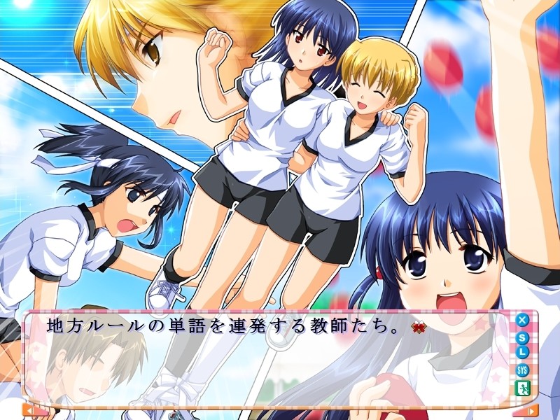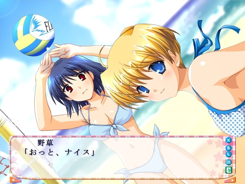 Main character is an ordinary high school student living his life casually surrounded by a colorful cast of unique personality friends. The summer sports festival on the sea approaches triggering a complex net of emotions and rivalry. vndbreview]