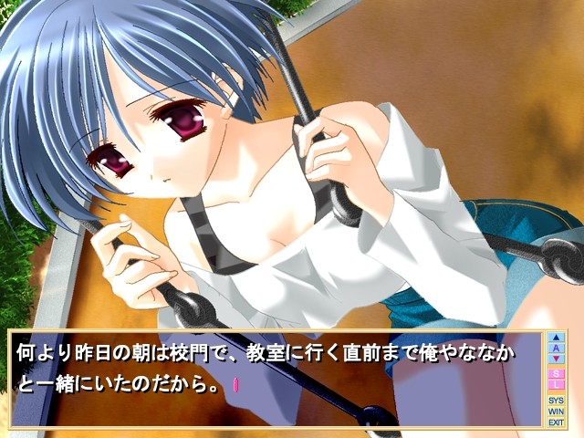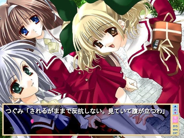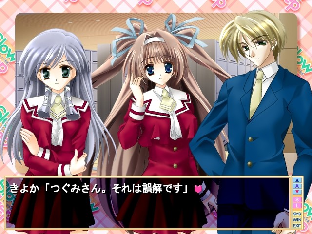 Main character decides to protect a new transfer student when she gets bullied. A common sense of sympathy overgrowing into love is born on that day. But what about childhood friend and school idol that he is already secretly in love with? vndbreview]