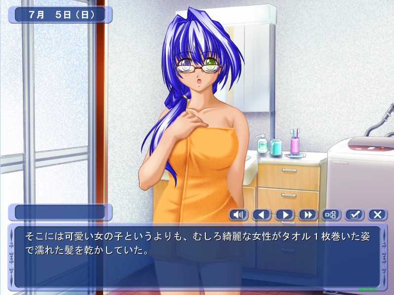 The main interesting feature of this game is that the new stepmother/oneesan character is customisable in many ways - hairstyle, haircolor, breastsize, tan pattern, etc.