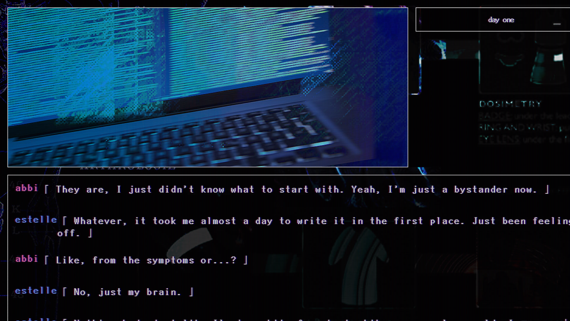 With no known cure for a Host infected by Miasma, Estelle spends the remainder of her days exchanging messages with her closest coworker, Abbi. Together, they do their best to feel intimacy by being perverts together while staring the looming, macabre regression toward death straight in the eye.