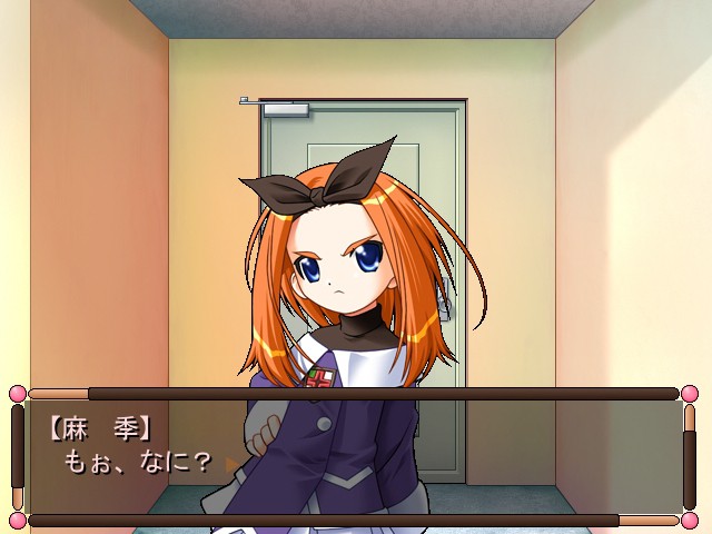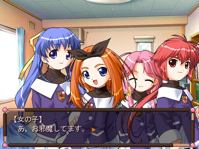 Main character attends preparatory courses and rents a room. Landowner's daughter often comes to him to play. One day he comes home to find his roomed cleaned. The landowner's daughter cleaned it and found a lot of interesting material there to experiment on. vndbreview]