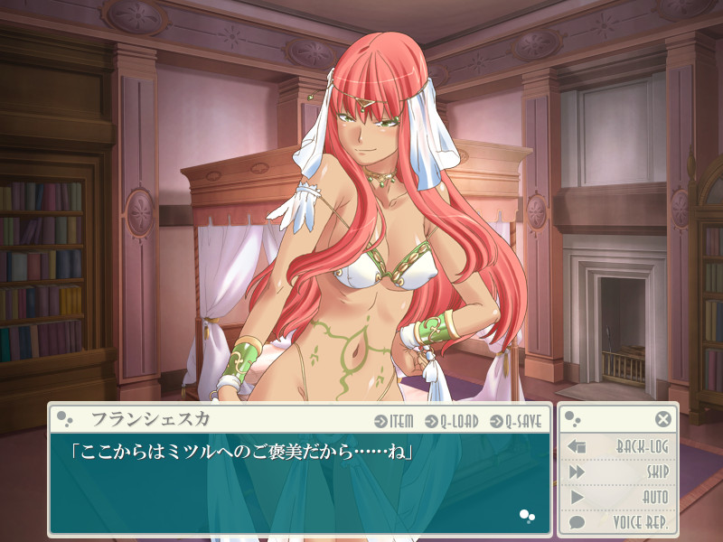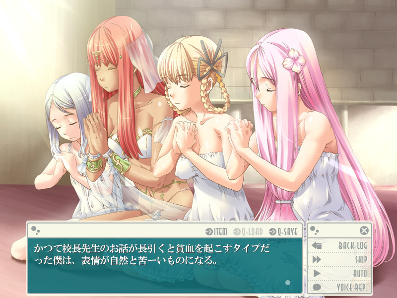 Big splash and scream. When Mitsuru opens his eyes, he finds himself at the bath. There is a girl in front of him sitting in surprise. "What's happened?!" He can't see his own hands... there is no body! It seems the girl can't see him either. She suddenly falls down, feeling dizzy. He folds her in his arms before she hits the ground. "Someone invisible helps me...?" As a result, he gets involved in the "Princess Selection Test"...