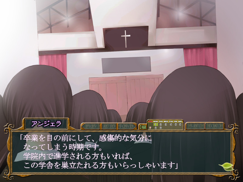 Main heroine is a mascot-like girl in a catholic girls school. Just before graduation ceremony a new transfer student suddenly approaches and kisses her. There is also a rumor about virgin examination at the graduation. Will heroine be able to graduate safely? vndbreview]