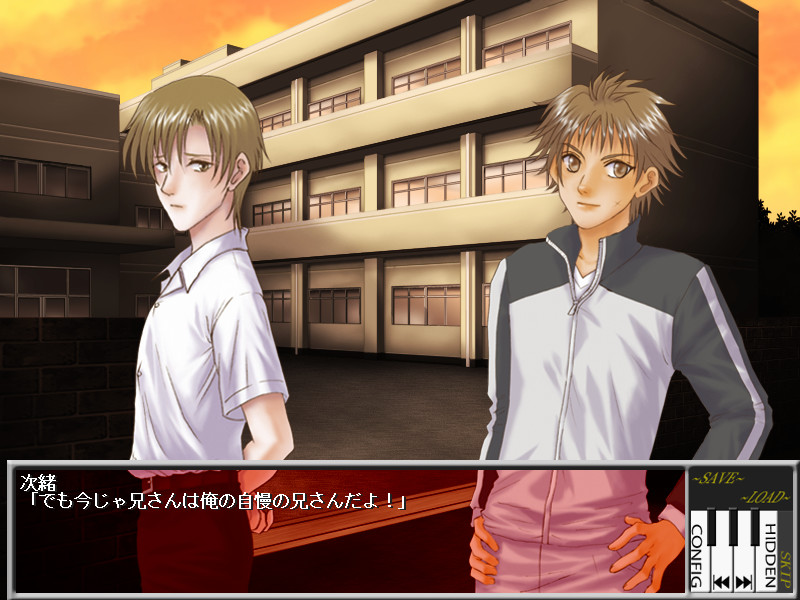 A beautiful guy enrolls at main character's school club. He accepts protagonist's confession with the condition to get an affair with his brother first. Protagonist clenches teeth and agrees as this is the only way to get access to the body. vndbreview]