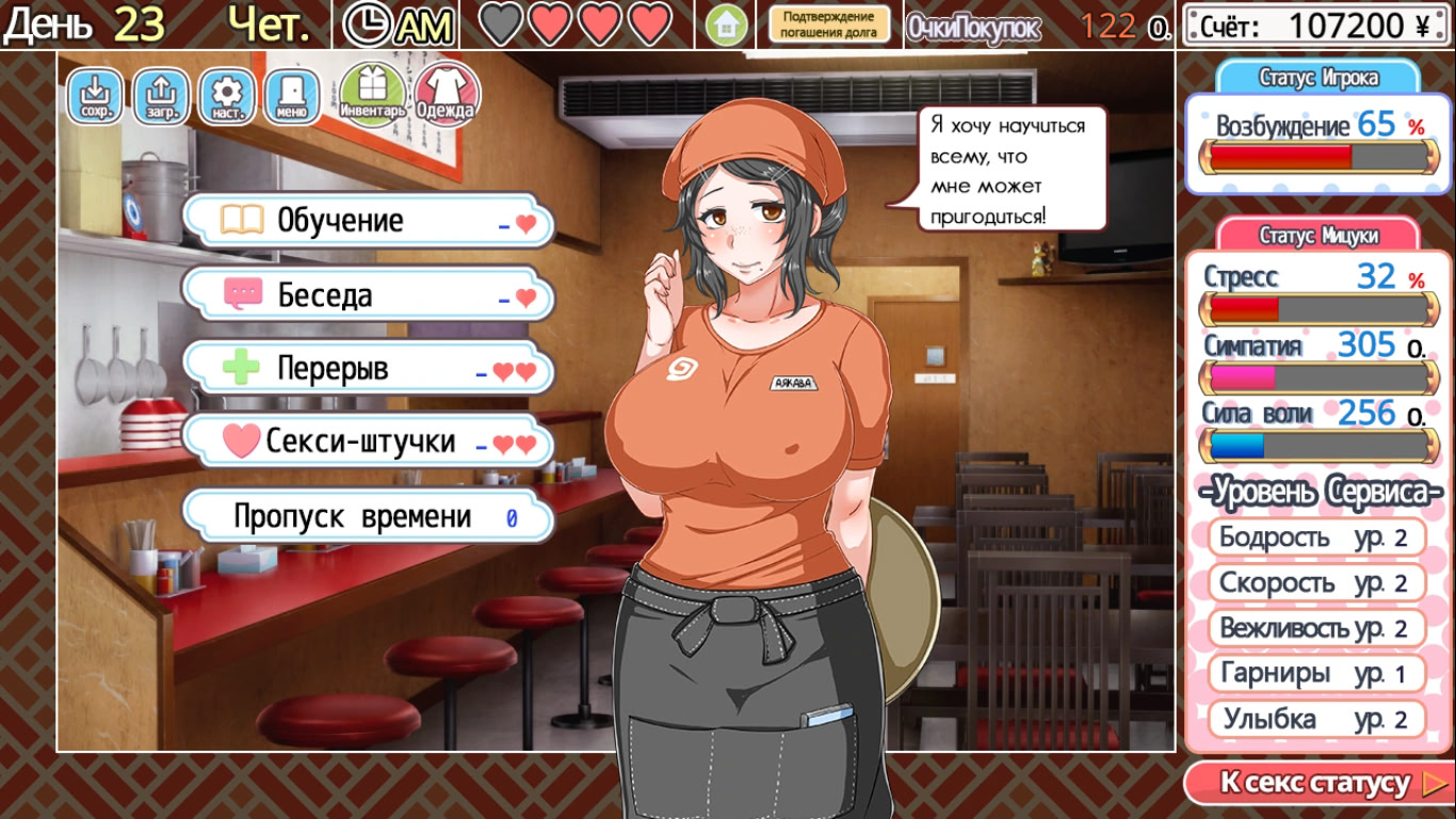 That's why it's up to you to train her into a good employee and make a success out of your ramen shop together!
