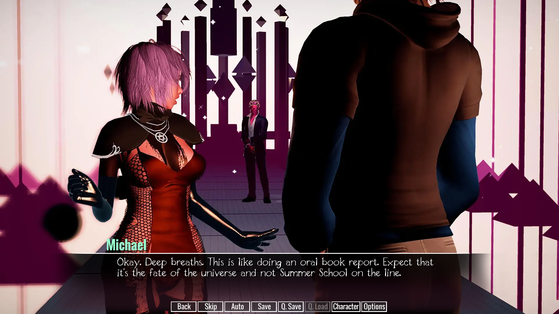 The main character (of your own naming) awakens to find himself in the Interim, a realm which exists between the old world and the new. Before long, he runs across Mira, an Entede--a metaphysical being sent to aid him. From her, he learns that he's there to assist those who've yet to properly move on. As these lingering humans desperately hold onto memories of their former lives, he must help them come to terms with their existence, all the while learning about the reason for his own situation.