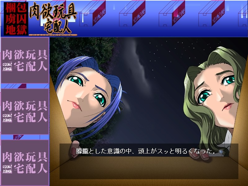 Working for a moving company, Shouji is invited to a party by a girl named Yuika. However, he is drugged, and multiple women take advantage of him, and rape him repeatedly. When he recovers his memory, he finds himself stuffed in a cardboard box on the railroad tracks, with a suicide note stuffed inside. Shocked, he frantically escapes from the cardboard box. Vowing revenge, he sets off to Yuika's residence. He pretends to be a delivery man, and enters her apartment. There, he stuffs her in a box and takes her to a hideout where she will be used as a lure to contact the other party members that violated him. Watch the depravity of Shouji's revenge as he hunts down and boxes up the women for his carnal revenge