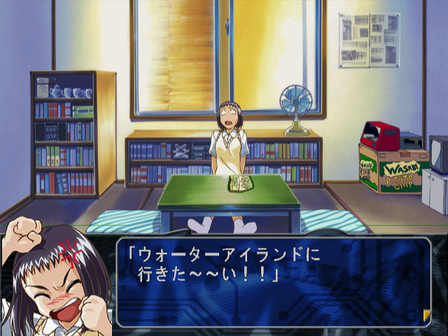 The story picks up lightly with Meguru and Miako bickering about. After some computer chatting, Miako arranged to go with Meguru and Shinobu to a Water Island amusement park. There, they would also meet up with some other friends and acquaintances. Time went by as they were checking all kinds of int...