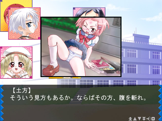 The main story of fandisc: Hijikata from Gyousatsu♥Shinsengumi acts as student detective and infiltrates girl school filled with heroines from Sapphism no Gensou in order to find and defeat evil. vndbreview]