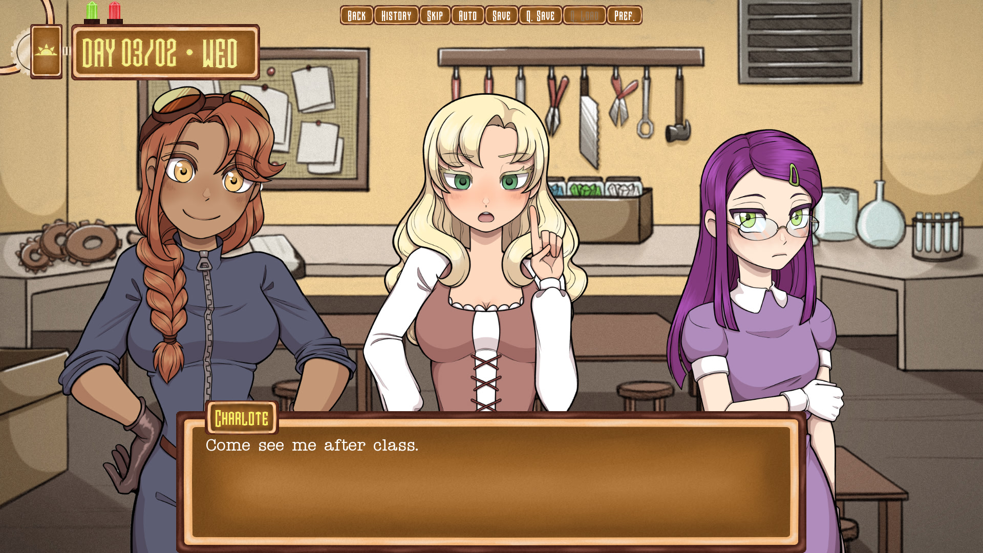 The game starts with the main character attending to a school for paupers for the first time.