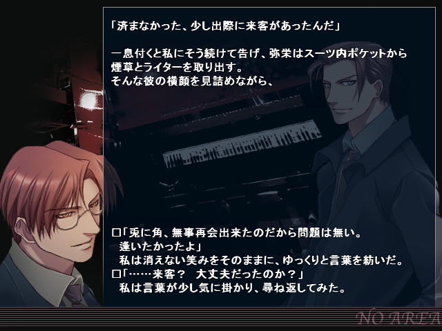 Two solitudes - doctor and company president secretary - meet at a beautiful bar named NoAREA. vndbreview]