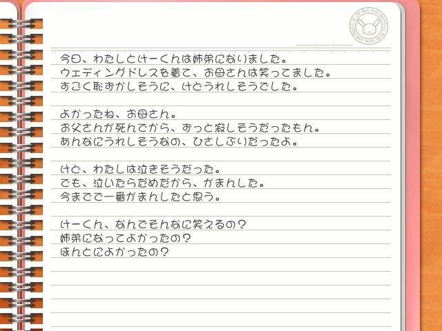 Protagonist has a less than lover more than friend Naho, and their parents get remarried making them siblings-in-law. Girl suddenly falls ill and starts to gradually lose memory. She confesses to protagonist in the end, but the scene is seen by the mother that forces protagonist to move out.