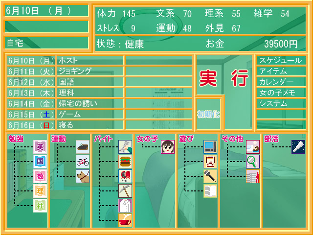 After progressing to his final year at school, our protagonist spent his time enjoying school life, playing games, talking to girls on the phone, going on dates and every now and then studying together with them until graduation.