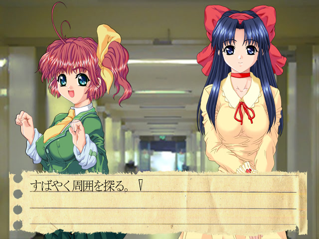Main character is a graduating student. He is ordered to investigate project of a professor. However, when he arrives to the laboratory, surroundings begin to gradually turn weird. What's awaiting him in this wrong place during wrong time? vndbreview]