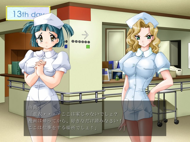 Main character is a guard at a hospital who protects nurses from suspicious persons. However, he has other side of personality - at night time he aims at late-shift nurses with the aim to tie them up and make photos of them. vndbreview]