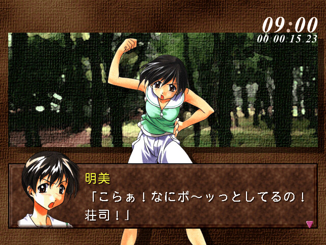 Prismaticallization is a dating sim, whose hero is a highschool senior named Shoji. He finds a strange object when he's invited to a summer resort by his classmate Akemi. The object causes him to repeat a day, but seems slightly different.