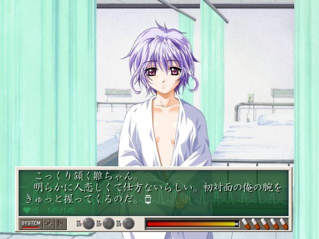 Main character returns to his home town and is struck by an image of a girl in a hospital room. He decides to explore that hospital. What kind of experience will he encounter in this mad hospital where violation is used as the main means of treatment? vndbreview]