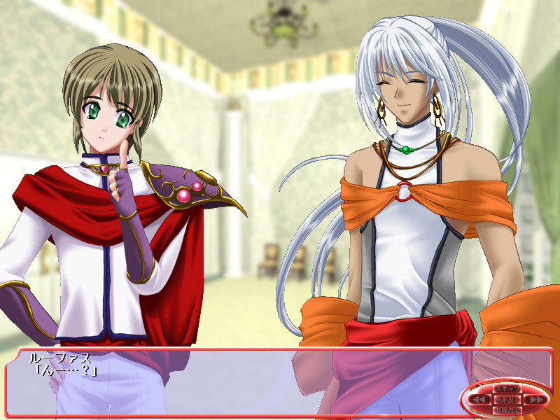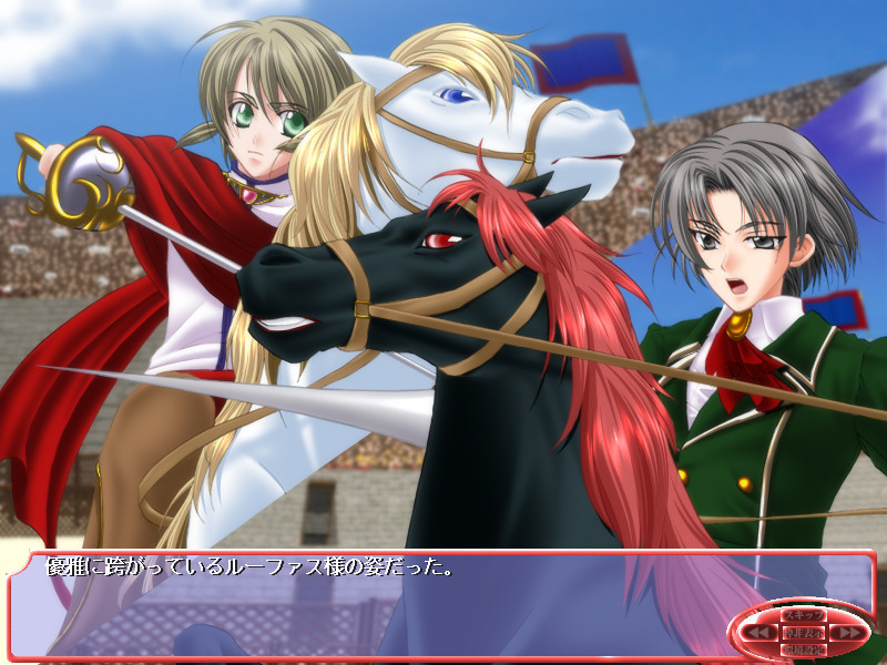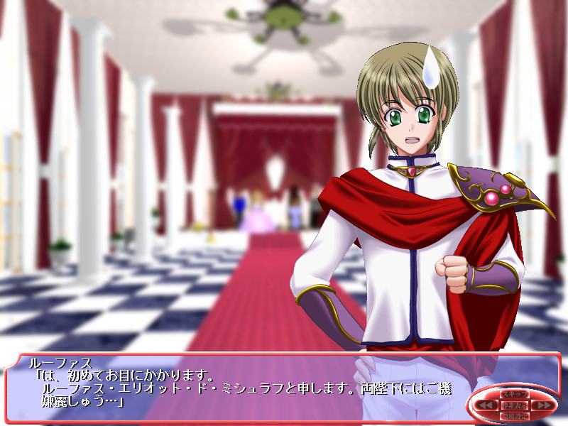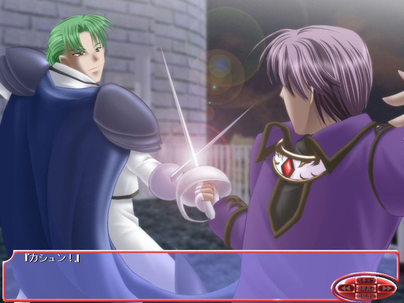 One kingdom approaches hereditary crisis. Royal family decides to hold a competition with the best candidate to be adopted as a prince. Main character is a teacher of poor aristocracy candidate Rufus. But under the mask of duties hidden love starts to flourish. vndbreview]