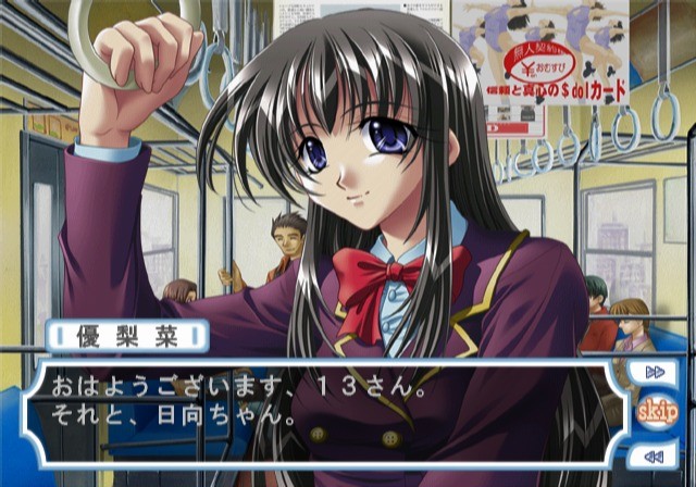 The protagonist, whose name is entered by the player, is a high-school student. This game is trying to show how a song can awaken the memories of the past and tie them together. The story opens as you listen to a song on a CD and start reminiscing events from the past... and of course, all the girls...