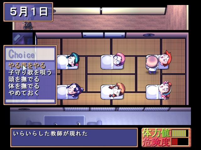 Main character goes to a school trip for 5 days. He is not interested in the shrines and temples at all, but what excites him is the prospect of naughty games with girls. vndbreview]