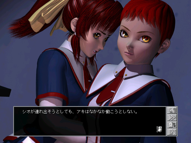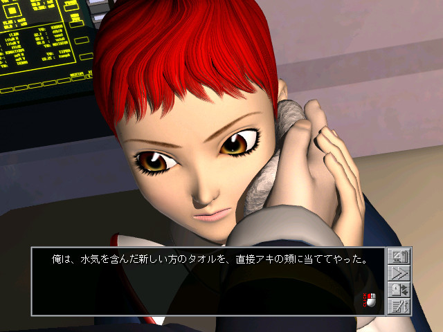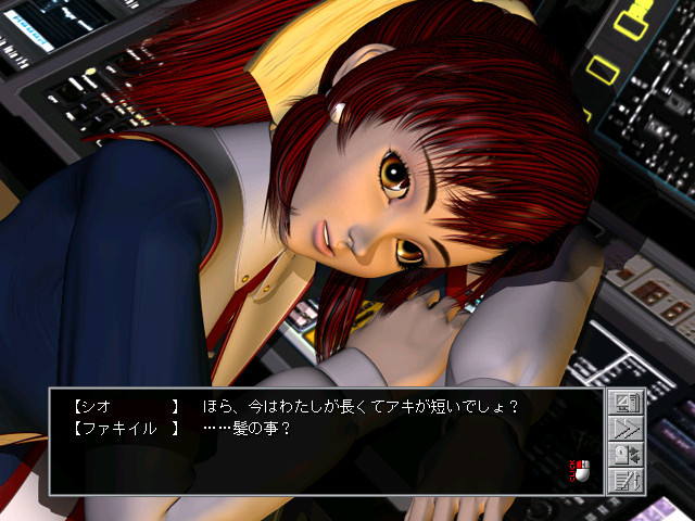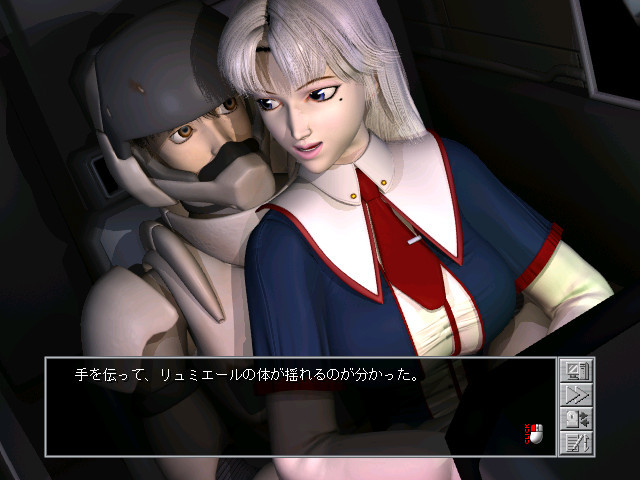 First Anchor is a Japanese-style adventure game, without puzzles. Unlike most games of this kind, there is real time movement in a 3D environment here. However, most locations and events are displayed as still pre-rendered images. Only the sex scenes are shown as animated 3D movies. The gameplay consists of navigating your character through the ship. The choice of the next location you go to might influence the story line.