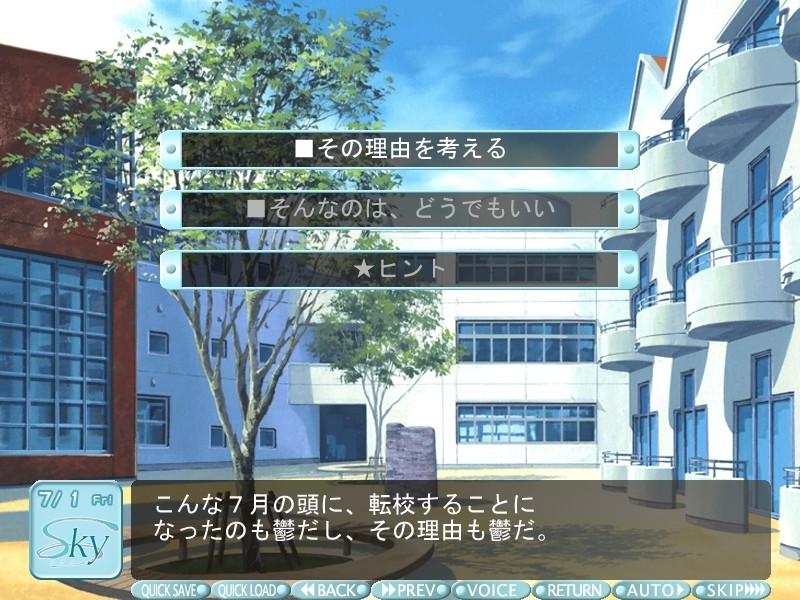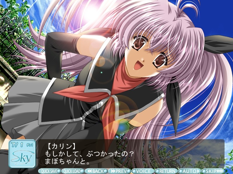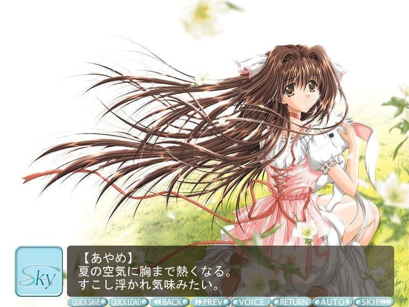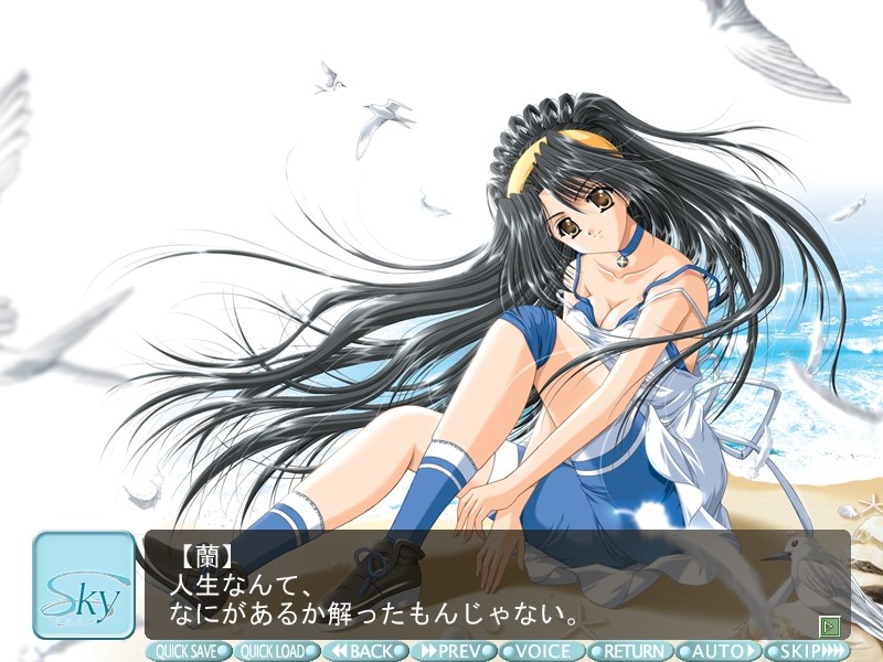 The sun darkens and casts shadows, and the wind clears her hat. Summer sea glimmers. White clouds run across the blue sky. She waves to me a lot. That's something I like in her. vndbreview]