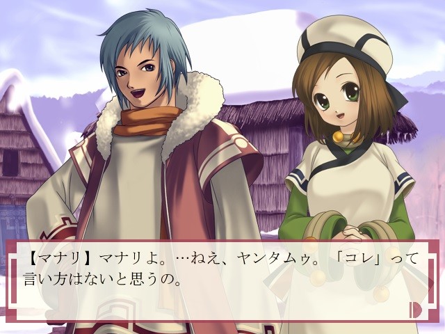 This game tells the story of one of the characters from SNK's popular fighting series Samurai Spirits: the girl Nakoruru. She comes from Kamuikotan, a small village on Japan's most northern island, Hokkaido, which is populated by Ainu, a nation with its own culture and traditions. The time of the game is set somewhere between the fighting tournaments where Nakoruru participates. She comes back to her home village, but the village elder sense evil, and her friends are worried about her. This is where you enter the picture - you play Mikato, a little girl who was told by the village elder to keep an eye on Nakoruru. The relationship between Mikato, Nakoruru, and other village inhabitants form the core of the game's story.