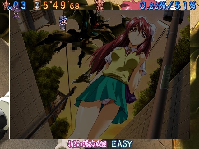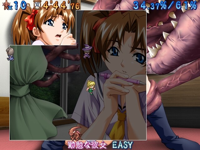 Assuming the role of a lecherous lesser demon you must uncover the background image with your marker until 80% of the image is revealed in a Xonix-like game. vndbreview]