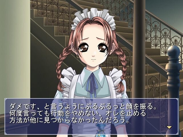 Main character loses his job and follows a newspaper vacation for a vaguely depicted job. The next day he is picked up by woman Kaoru and taken to a mansion where he needs to overcome girl Elena's phobia of men. vndbreview]