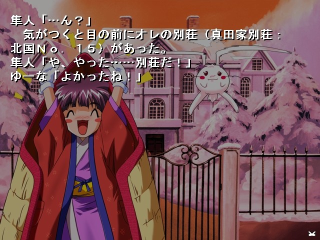 This game is staged in the town of Chelkiki, nestled in the northern part of Japan glistening like the color of silver. Its picturesque serenity has never existed on a map.Hayato Sanada, the owner of an magnificent villa, is enjoying a ride with his butler in his "Hawaiian Crusher ‡U." It is a continuous summer-like 86 degrees inside the Hawaiian. Suddenly, a girl comes rolling down from the top of the summit in a snowball. She collides with the Hawaiian, and his beautiful car is demolished. What a way to meet a girl! The girl Yuuna helps Hayato return to his villa; he realizes that it was their destiny to meet.This slapstick comedy-adventure is staged in the land of snow, where you'll also enjoy appearances from heroines from our other pieces of work. Amongst the laughter, this game will really make you yearn for your youthful days.