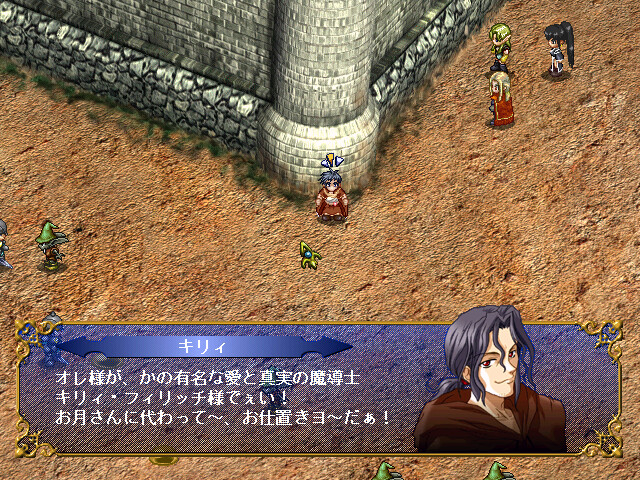The battle develops with turn-style tactics. You order your party (up to 5 characters) to advance into war. There are over 60 different types of magic and assault tactics to use in this animated game. The battle rages on...