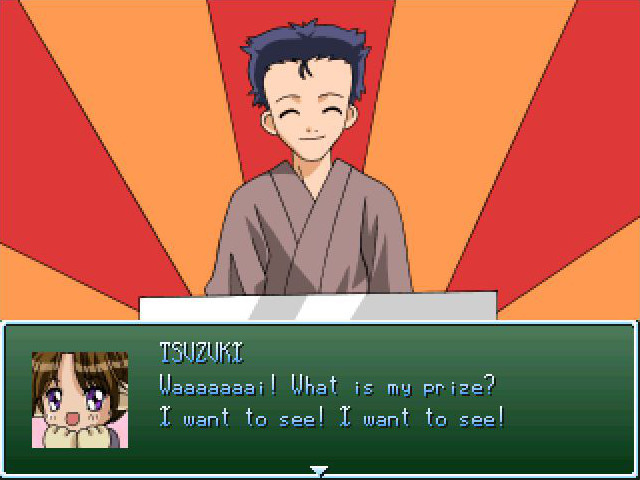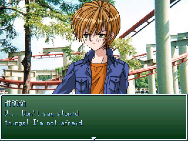In the game the player is Tsuzuki-san. You go to an amusement park with Tatsumi, Watari and Hisoka. Your objective is to get the romantic ending with the character you like, but you must take care of the things you say to them. Ren'Ai Archive]