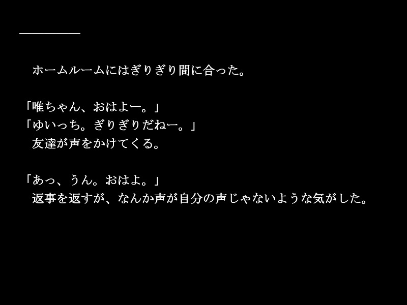 Heroine encounters chikan in the train for the first time in her life. Every next day her torments increase with new assaults. vndbreview]