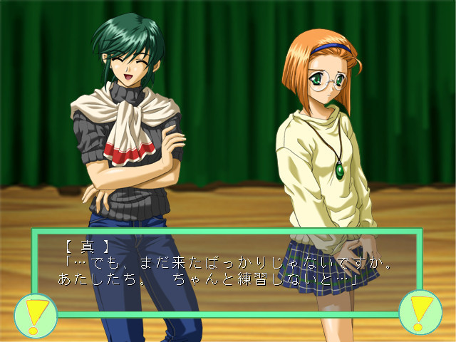 Main character enters a theater club "Makoto" at school, but is confused for a girl. He wants to quit it at once, but all the beautiful girls there pique his interest. vndbreview]