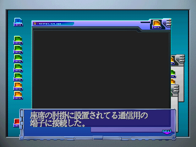 Kaen Seibo is a Japanese-style adventure which relies largely on conversations and the choices you make during them. However, the game also contains elements of Western-style adventuring. There are items that must be found, picked up and used at appropriate moments. There are areas where you can move through a 3D-like environment, viewing it from first-person perspective. During the dialogues, you also have commands that are accessible through a menu. There are also segments with a time limit.