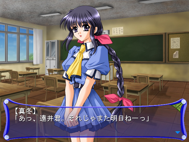 Atsunori Toi falls in love with Mafuyu Shinonome; she's as pure as snow and as beautiful as a painting. He asks her out, but she tells him her secret. She has had countless sex. She doesn't even know the names of some of them. She asks our hero, "Can you still love me?" Will he or will he not fall in love with her? This is Winters' second masterpiece. It is an adventure game centered around a nymphomaniac girl.