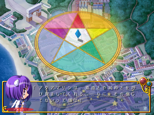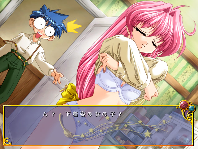 Will Jan be able to finally meet the witch? This adventurous story takes place in the beautiful, medieval European-like town of Evenburg. The goal of the player (Jan) is to find the gem called "A Drop of the Moon." Throughout the quest, the player will meet many cute witches and experience exciting events with them! This title features a new "Attribute System," which appoints every witch a specific guardian gemstone. This system randomly decides which events will occur according to the personalities of the characters. For instance, if your character doesn't share matching attributes with the heroine, your character will never share the night with her! Play hard! Get the gem! Get your favorite girl!!
