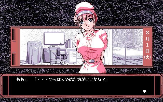 Momoko-chan for Me: Minarai Kangofu-hen is a visual novel focusing on a young male aspiring physician, the son of a famous doctor who has left on a vacation and entrusted the son with the management of certain hospital-related affairs. The game focuses exclusively on the relationship between the protagonist and a nurse-in-training named Momoko.