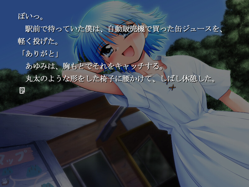 This is a visual novel with multiple scenarios, where the story changes depending upon your decisions. You will witness the love story of our hero Seiji Mizuno and his girlfriend Ayumi Takigawa. You will see their lives as circumstances evolve around them: The city and the country, as well as the past and the present. Please pay particular attention to the stage background brimming with emotion.