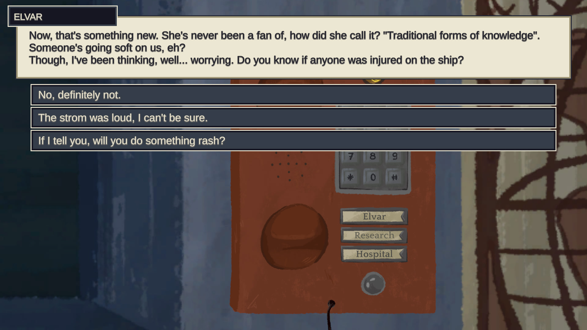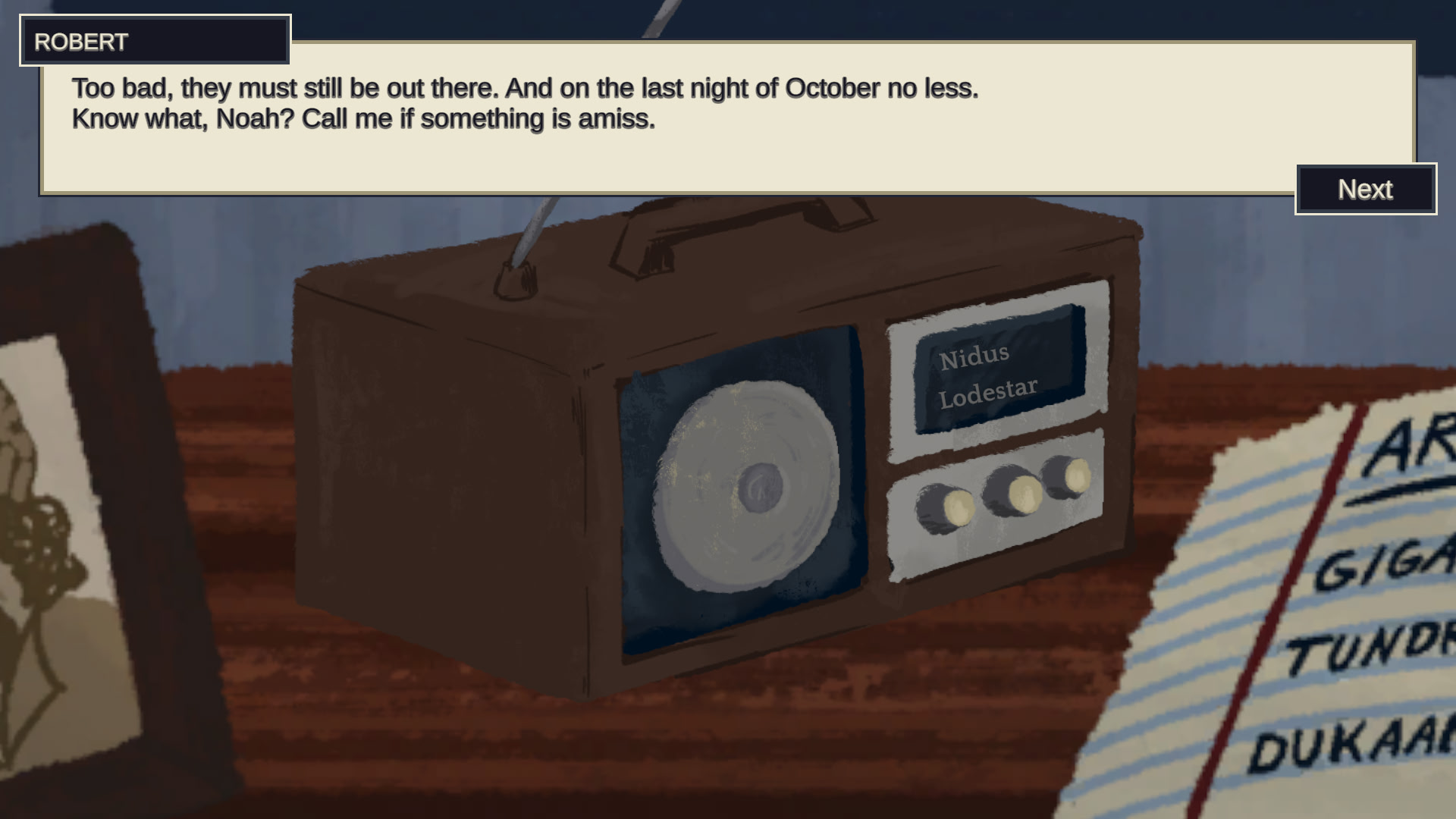 On Halloween in Iceland, the sun sets early and most fishing boats are already back in port. Noah, who took over the lighthouse from his late father, is keeping watch as a storm nears. One boat, the Lodestar, is still missing – and the townspeople are uneasy. Itch.io]