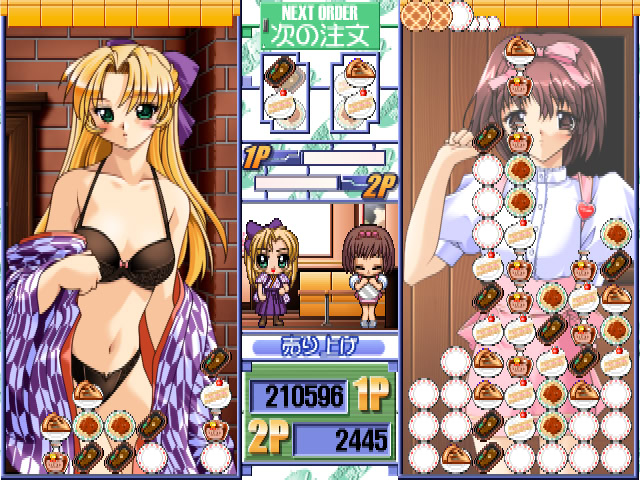 Falling blocks undressing puzzle game with short dialogues before the battles. vndbreview]