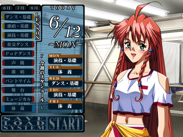 Main character is a slightly devilish celebrity manager. He makes idols out of trouble girls with lots of complexes. There are three main disciplines - dancing, singing and acting - but the result greatly depends on the trust parameter nurtured in the girl. vndbreview]