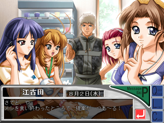 Main character comes to a training camp on the southern island during summer vacation. He meets a variety of lovely girls there. They have fun every day attending classes together and going out to play. But won't study become neglected with so much love in the air? vndbreview]