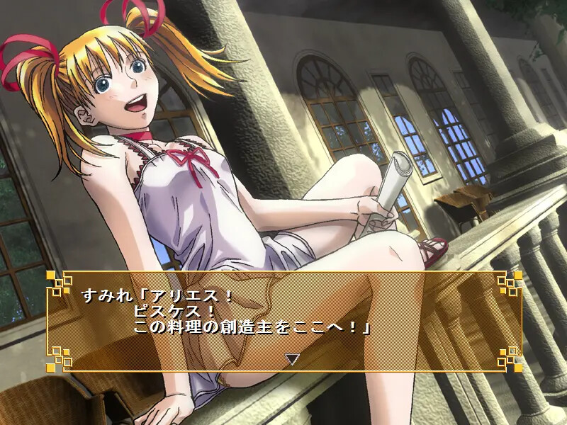 Protagonist is a world-wide known chef. This time he decides to cook for two weeks a western mansion on an isolated island. Six girls volunteer to assist him there. vndbreview]