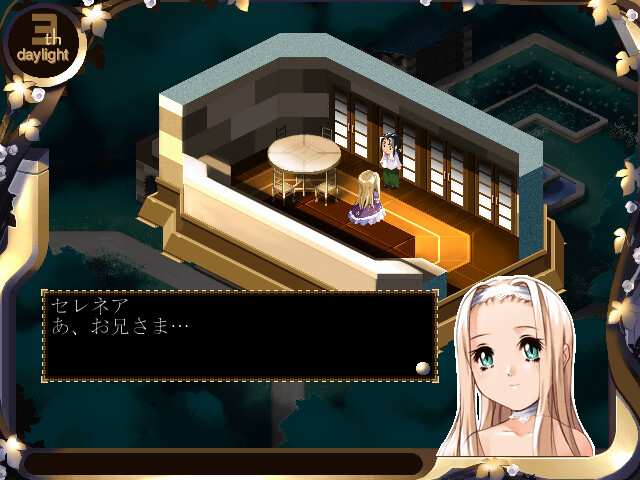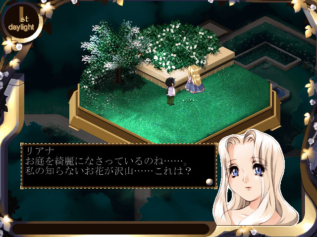 Main character lives in a mansion with his maid Lease Frau who allows him to avoid socializing. One day he receives a letter from his cousin Liana who is forced to serve at king's court and who wants to spend the leftover time before separation together with main character... vndbreview]
